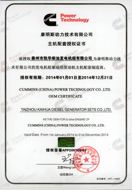 • 重慶康明斯OEM證書